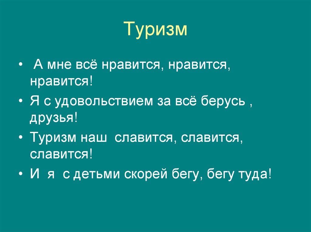 Туризм• А мне всё нравится, нравится,