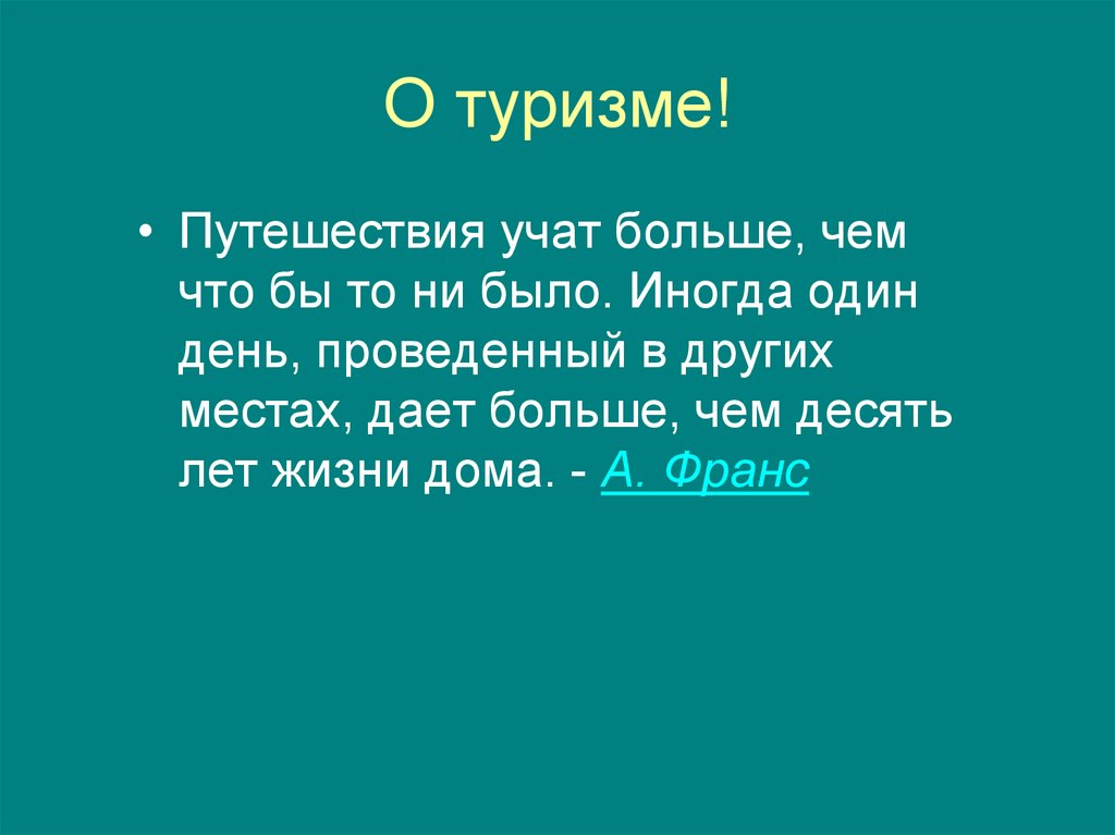 О туризме!• Путешествия учат больше, чем