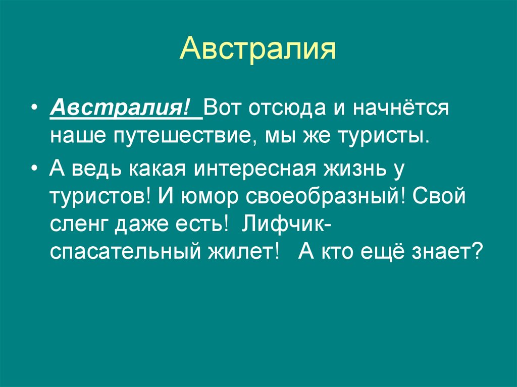 Австралия• Австралия! Вот отсюда и начнётся