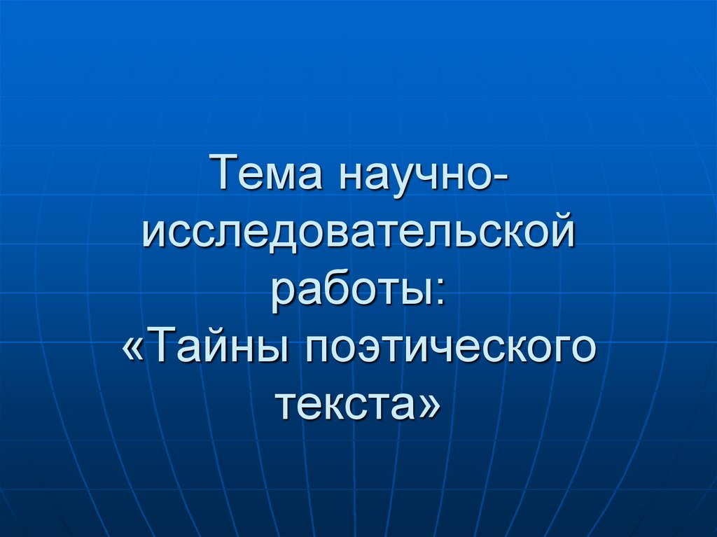 1. Тема научно- исследовательской работы: «Тайны поэтического текста»