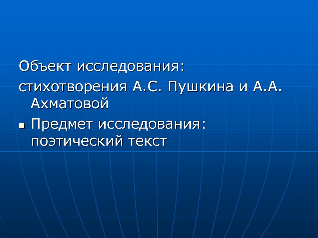 Объект исследования:стихотворения А.С. Пушкина и А.А.