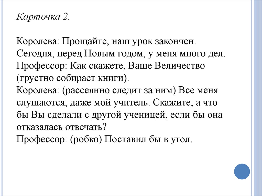 Карточка 2.Королева: Прощайте, наш урок закончен.
