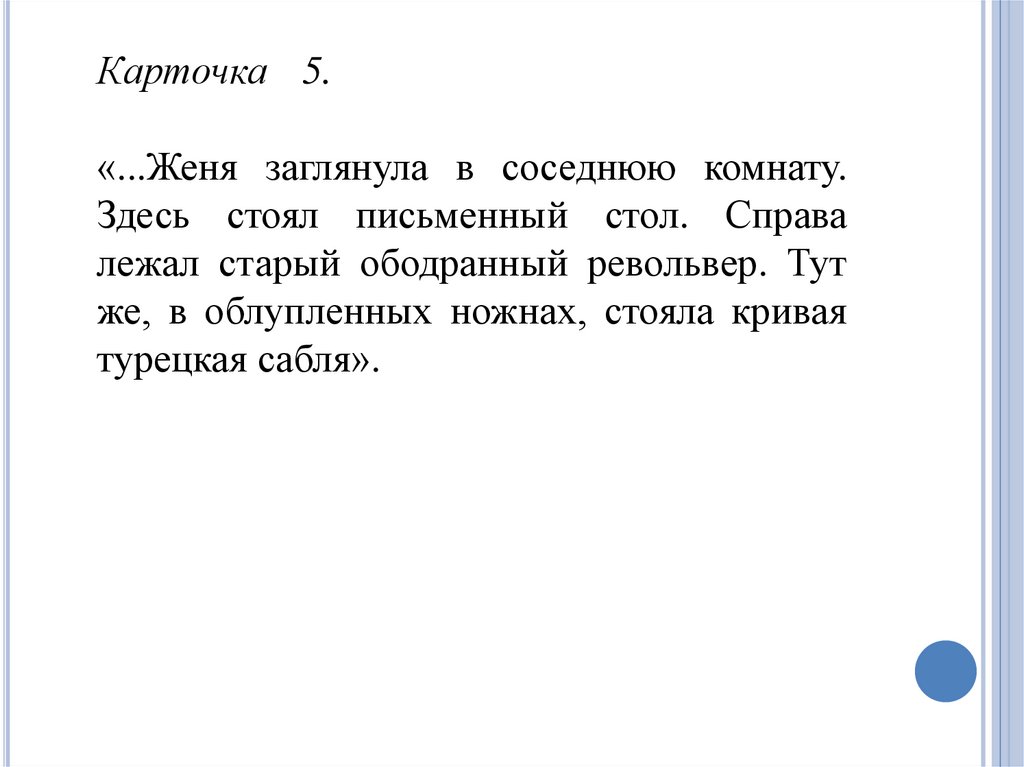 Карточка 5.«...Женя заглянула в соседнюю комнату.