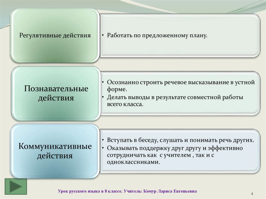 Регулятивные действия• Работать по предложенному плану.