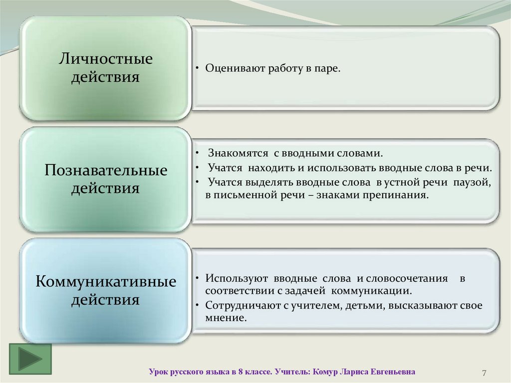 • Учатся находить и использовать вводные слова в речи.