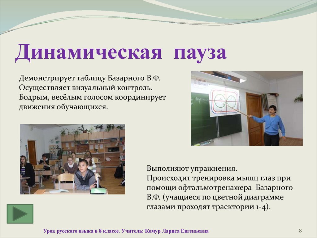 Динамическая паузаДемонстрирует таблицу Базарного В.Ф.