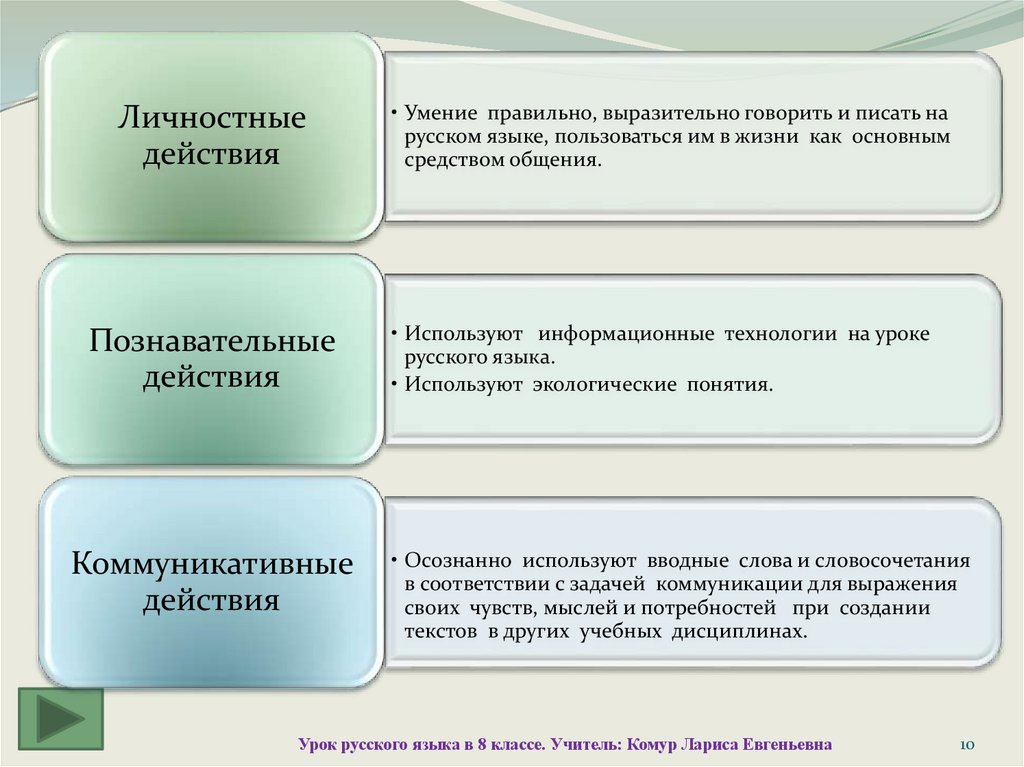 Коммуникативные : умение осознанно использовать вводные слова и