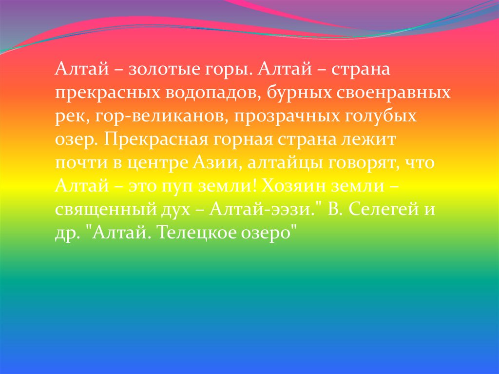 Алтай – золотые горы. Алтай – странапрекрасных водопадов, бурных своенравных