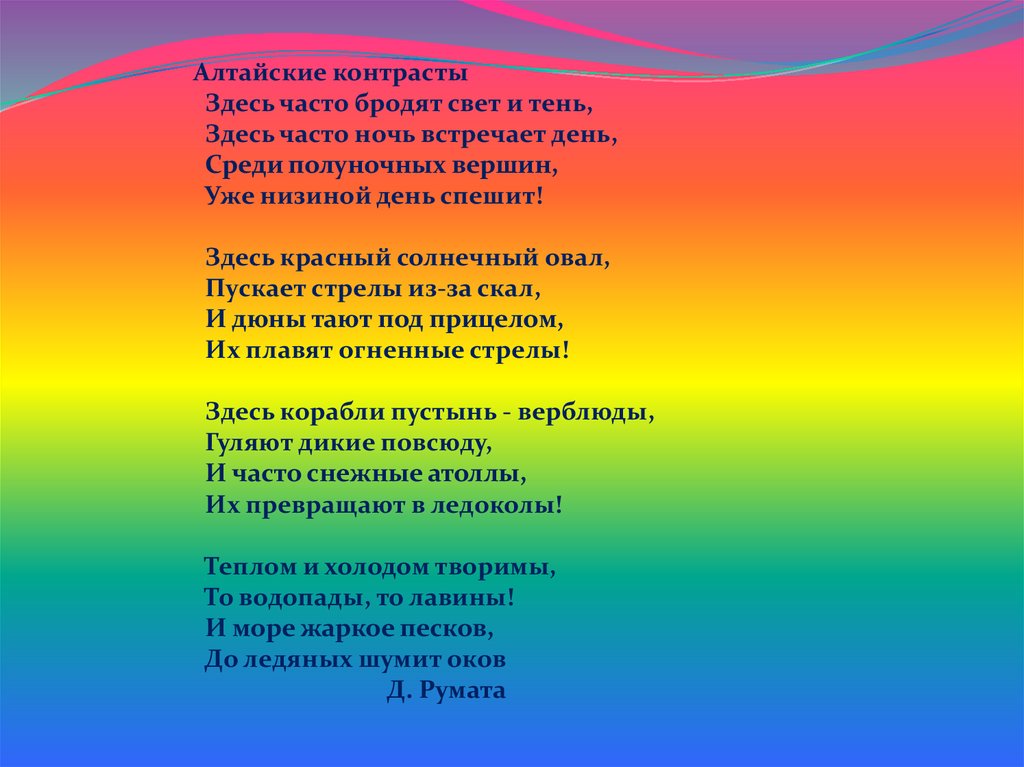 Алтайские контрастыЗдесь часто бродят свет и тень,