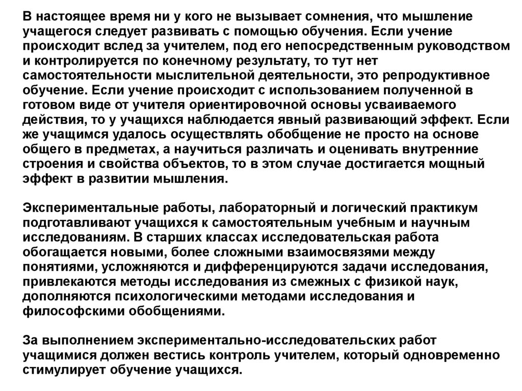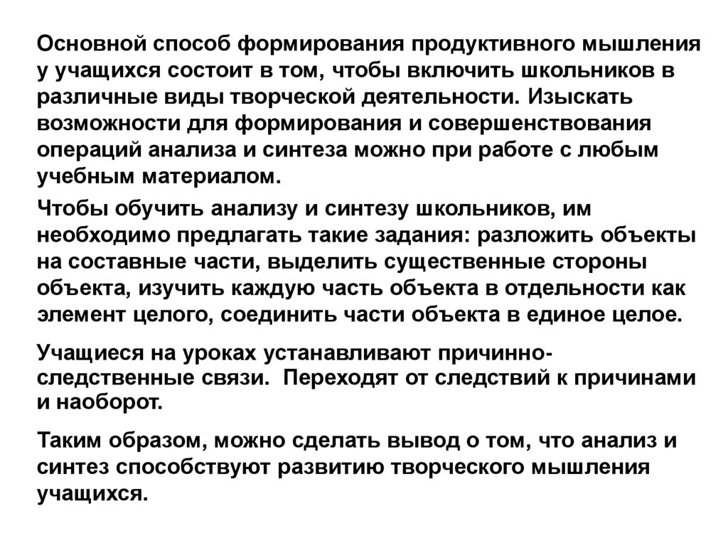 Основной способ формирования продуктивного мышленияу учащихся состоит в том, чтобы включить школьников в