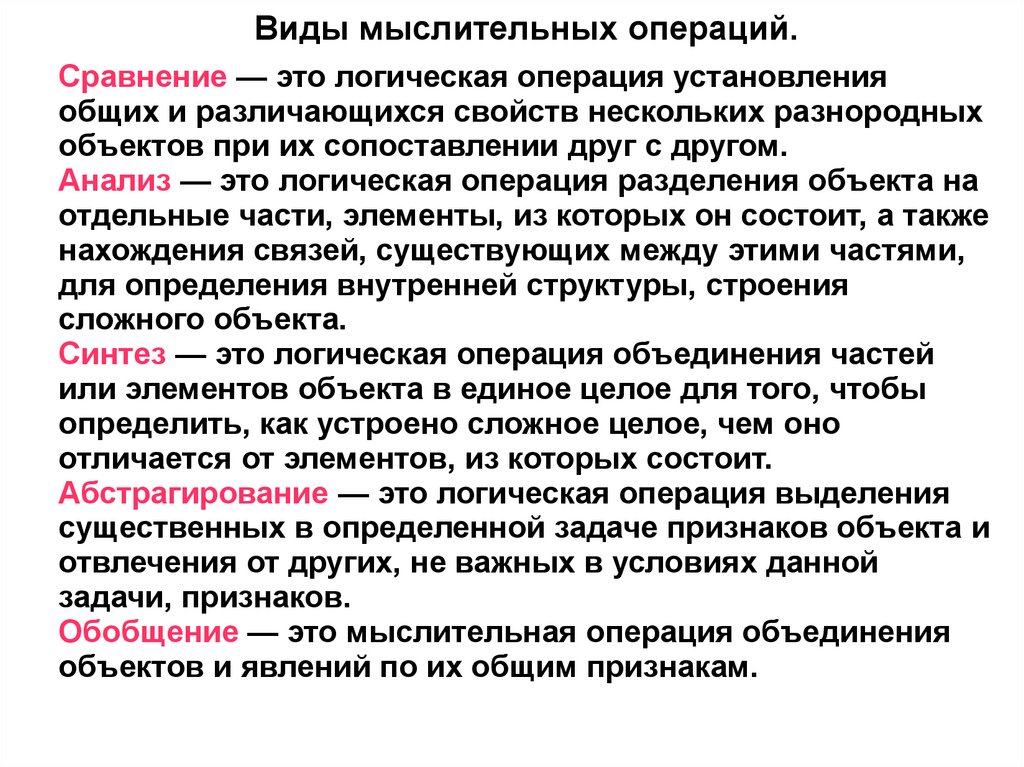 психологии обычно выделяют такие операции как сравнение,