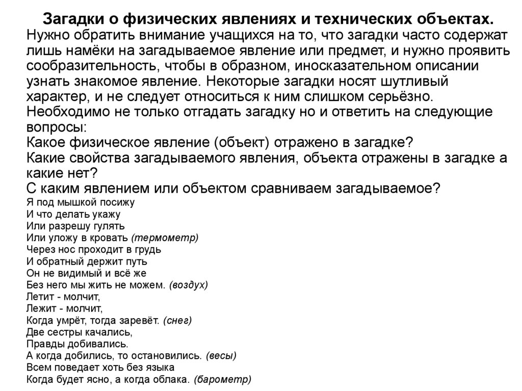 Какие свойства загадываемого явления, объекта отражены в загадке а
