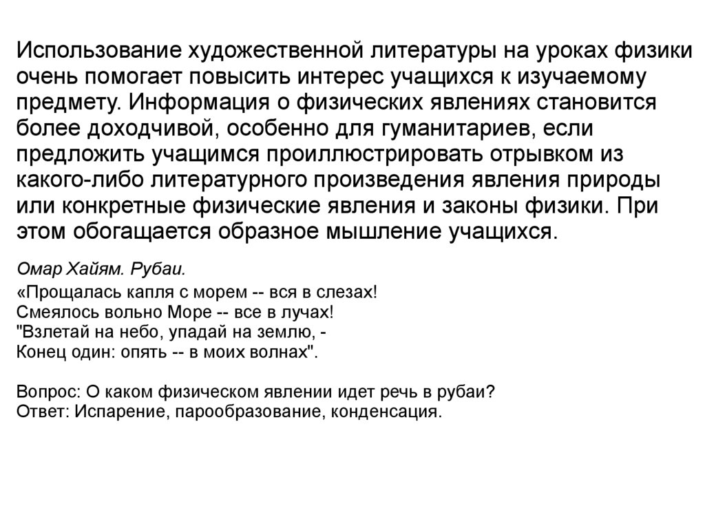 Вопрос: О каком физическом явлении идет речь в рубаи?