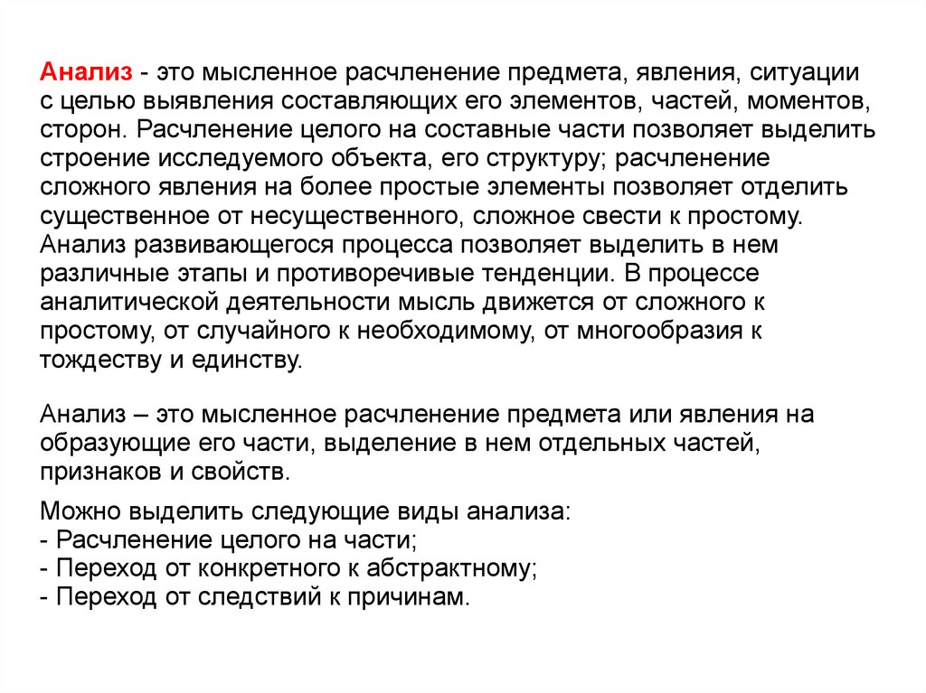 Анализ – это мысленное расчленение предмета или явления на
