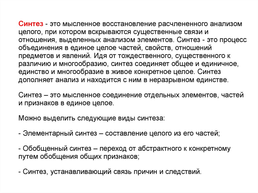 Синтез – это мысленное соединение отдельных элементов, частей