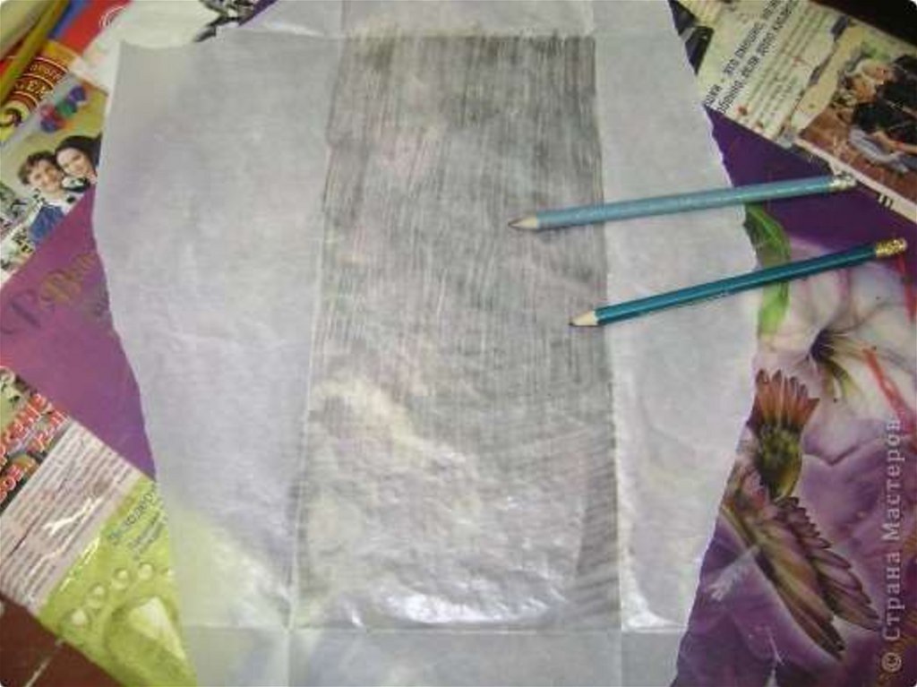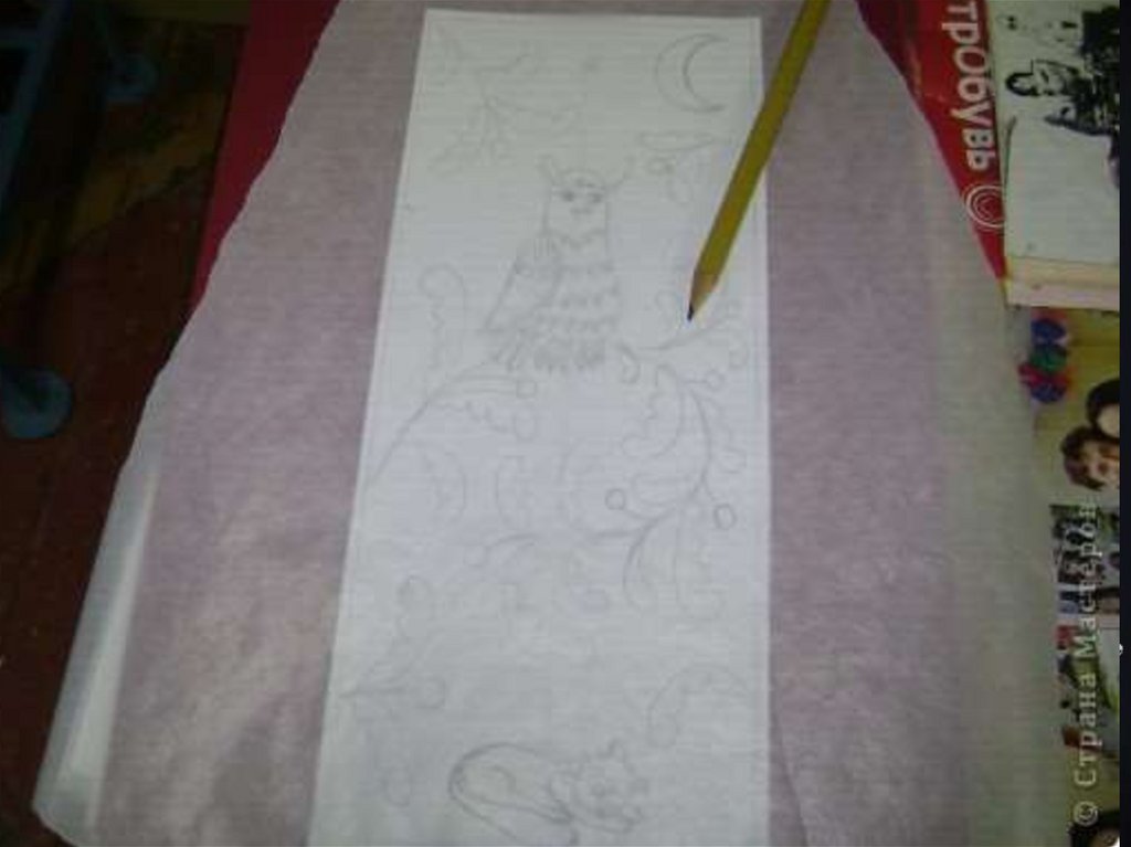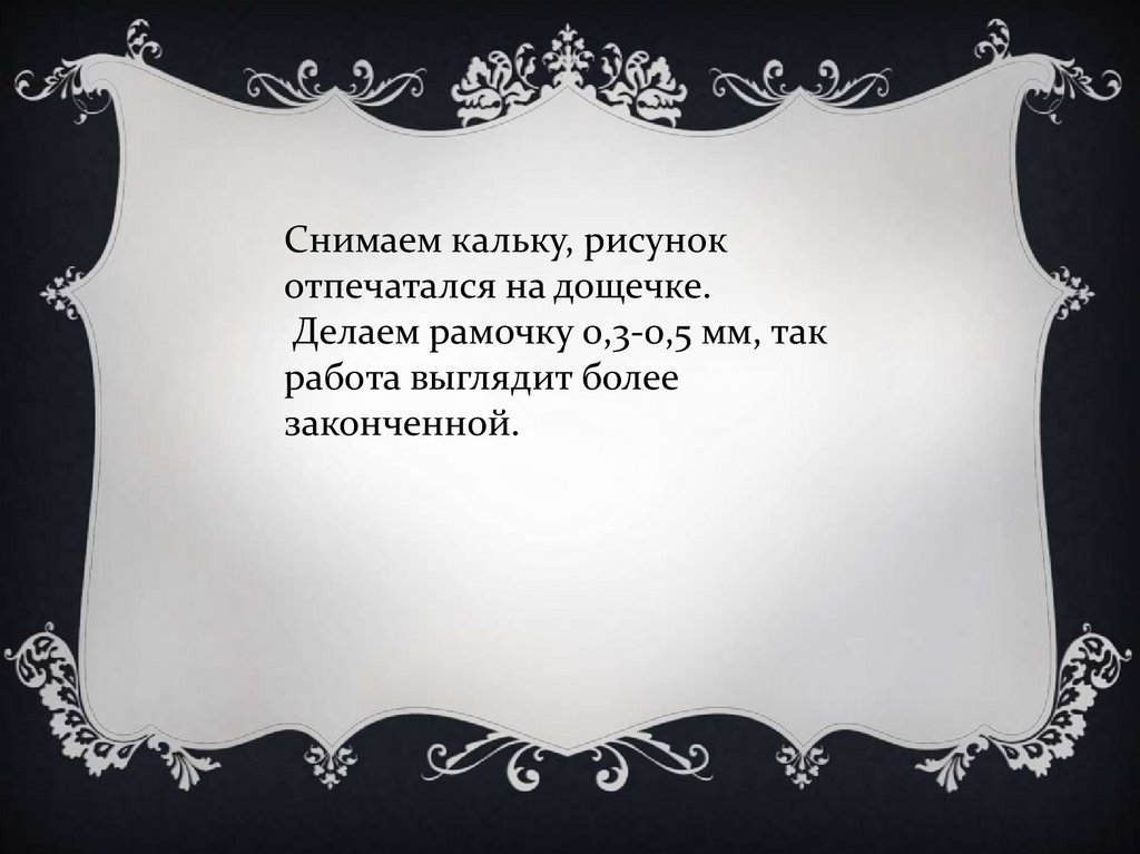 Снимаем кальку, рисунокотпечатался на дощечке.