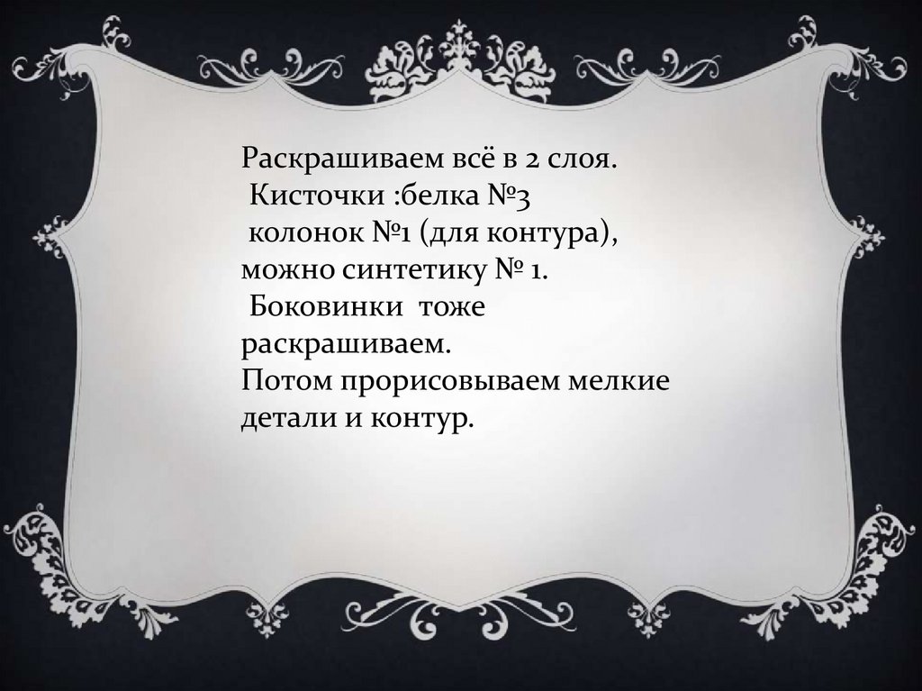Раскрашиваем всё в 2 слоя.Кисточки :белка №3