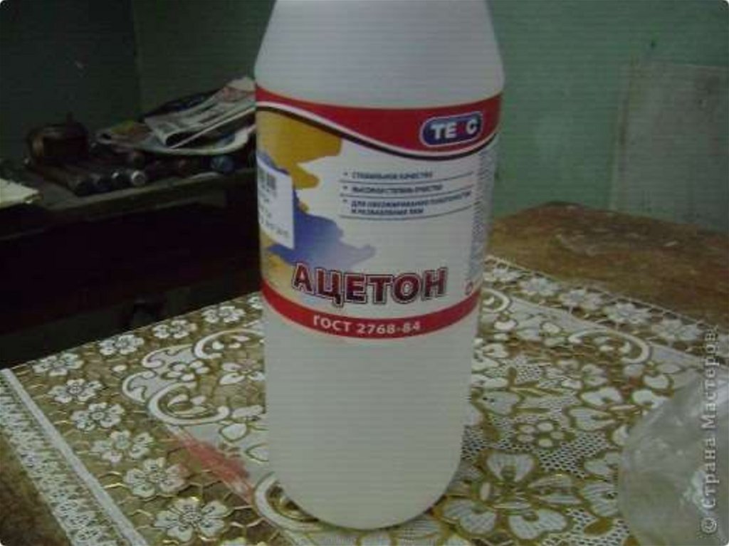 растворяется ацетоном. Он
