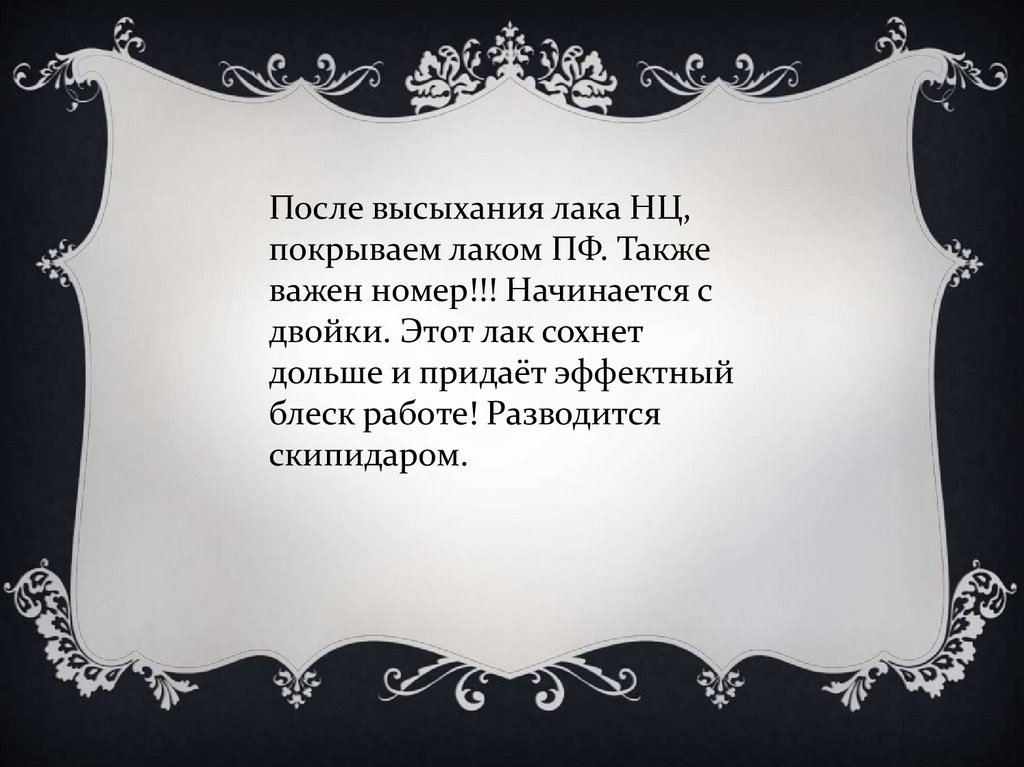 После высыхания лака НЦ,покрываем лаком ПФ. Также