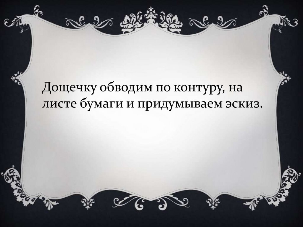 Дощечку обводим по контуру, налисте бумаги и придумываем эскиз.