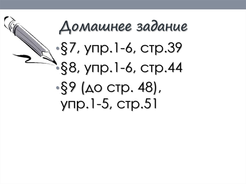 • §7, упр.1-6, стр.39• §8, упр.1-6, стр.44