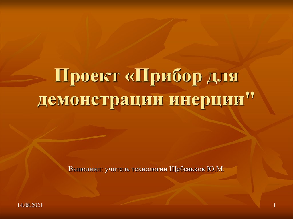 В проектной работе я решил изготовить прибор подемонстрации закона инерции, так как при