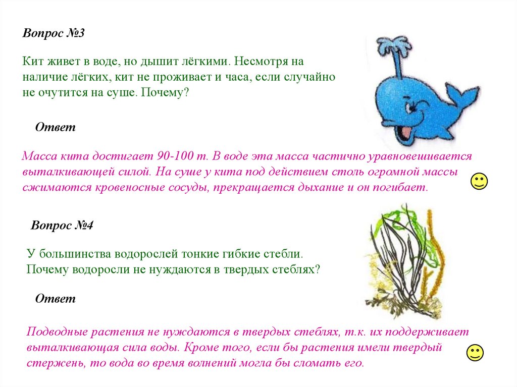 Вопрос №3Кит живет в воде, но дышит лёгкими. Несмотря на