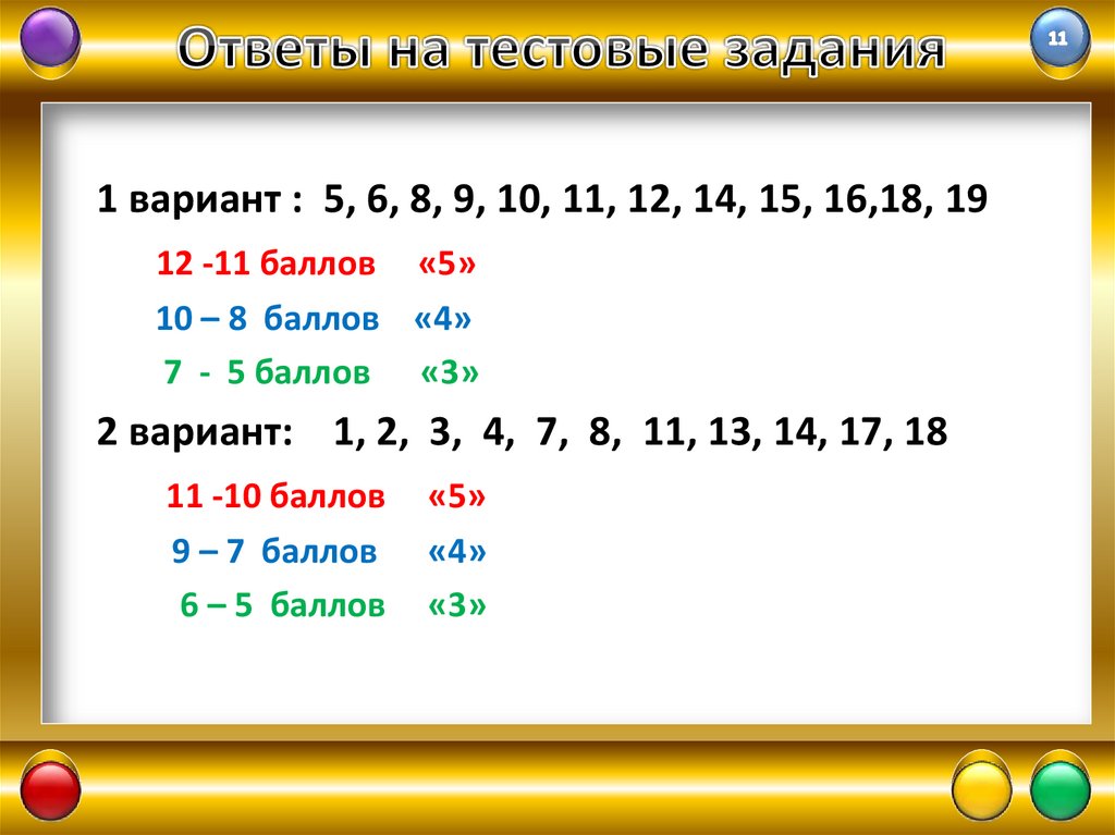 1 вариант : 5, 6, 8, 9, 10, 11, 12, 14, 15, 16,18, 1912 -11 баллов «5»