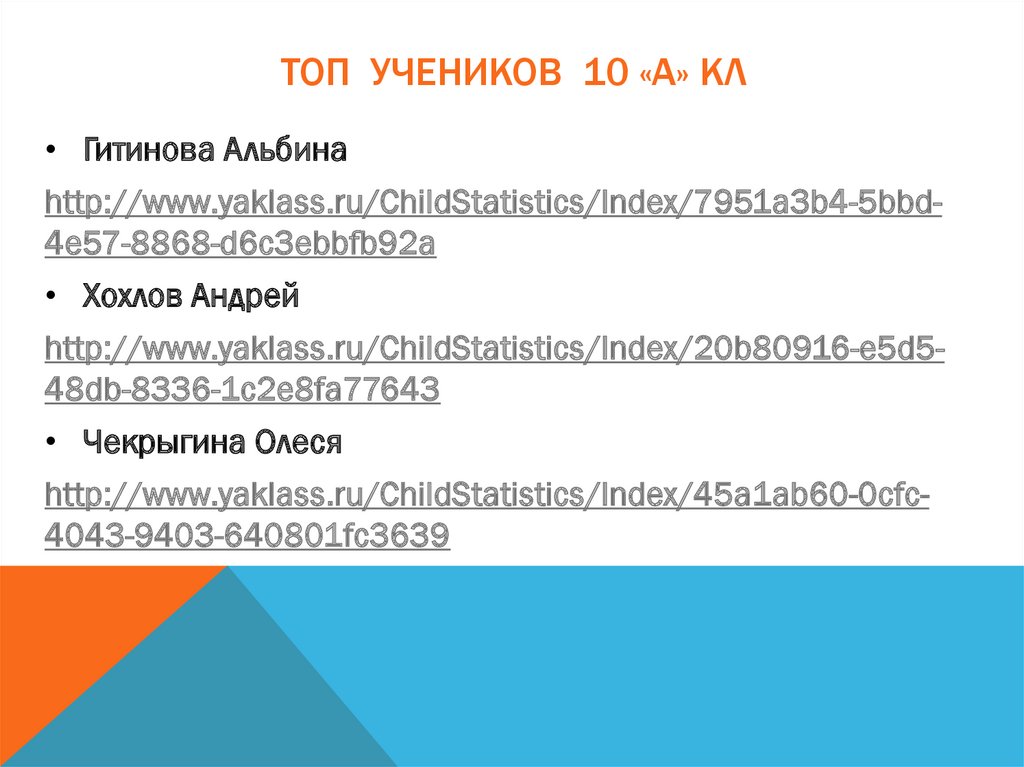 ТОП УЧЕНИКОВ 10 «А» КЛ• Гитинова Альбина