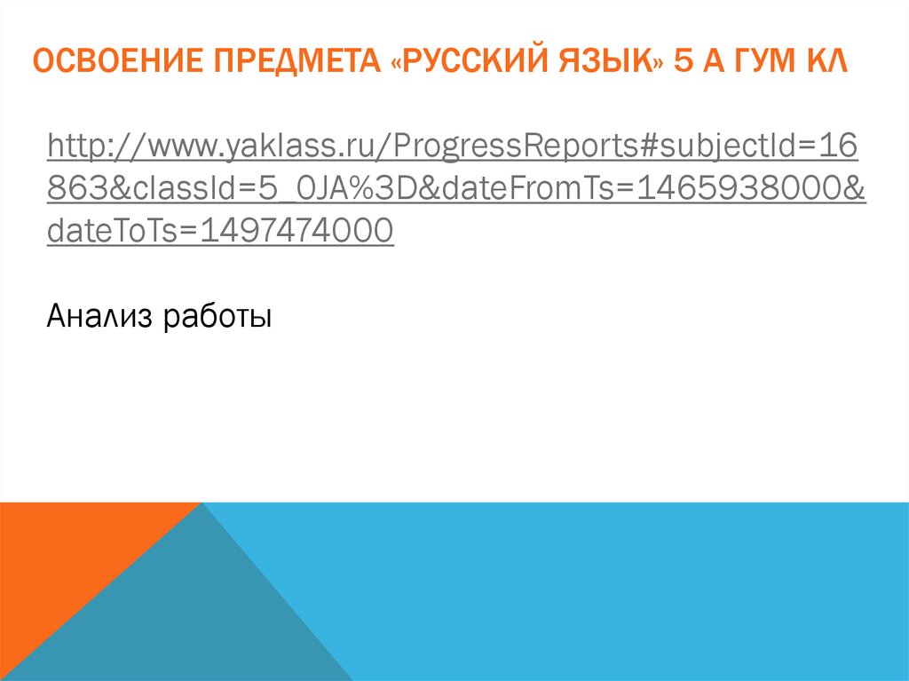 ОСВОЕНИЕ ПРЕДМЕТА «РУССКИЙ ЯЗЫК» 5 А ГУМ КЛhttp://www.yaklass.ru/ProgressReports#subjectId=16