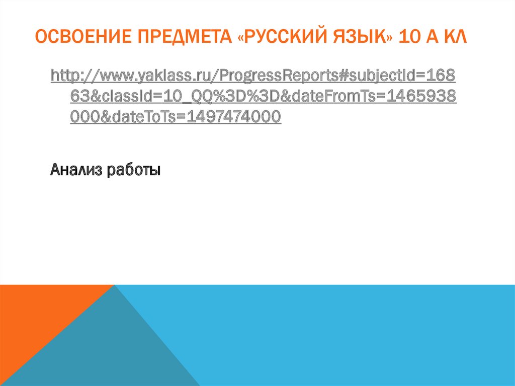 ОСВОЕНИЕ ПРЕДМЕТА «РУССКИЙ ЯЗЫК» 10 А КЛhttp://www.yaklass.ru/ProgressReports#subjectId=168