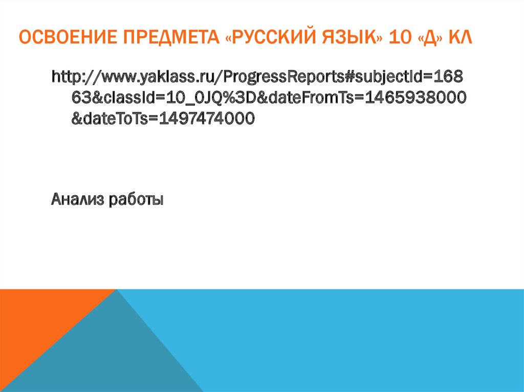 ОСВОЕНИЕ ПРЕДМЕТА «РУССКИЙ ЯЗЫК» 10 «Д» КЛhttp://www.yaklass.ru/ProgressReports#subjectId=168