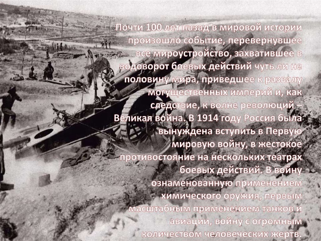 Исход этой войны стал трагичным для России революция, братоубийственная гражданская война,раскол страны, утрата веры и тысячелетней культуры,