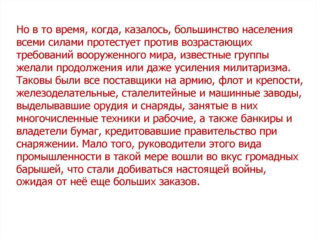 желали продолжения или даже усиления милитаризма.