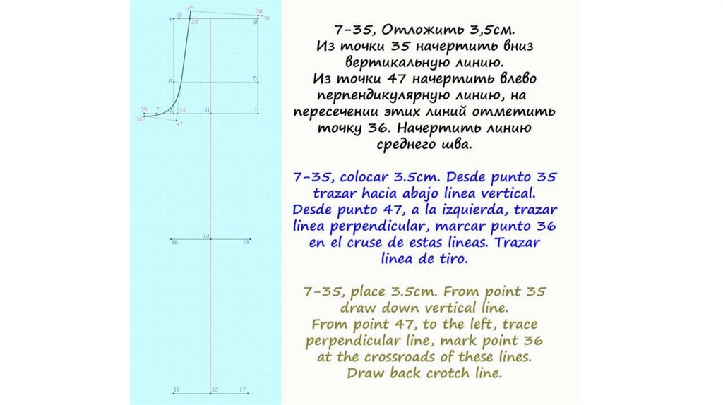 Построение основы чертежа женских брюк