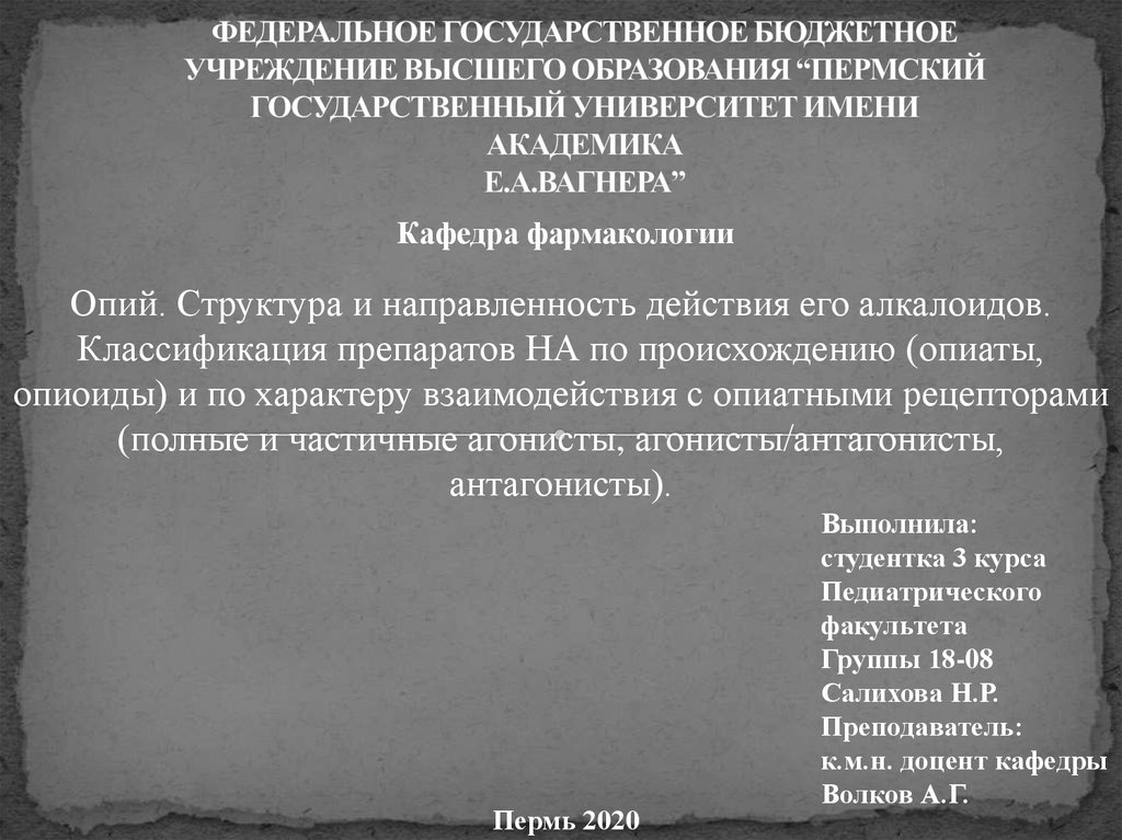 Кафедра фармакологииОпий. Структура и направленность действия его алкалоидов.