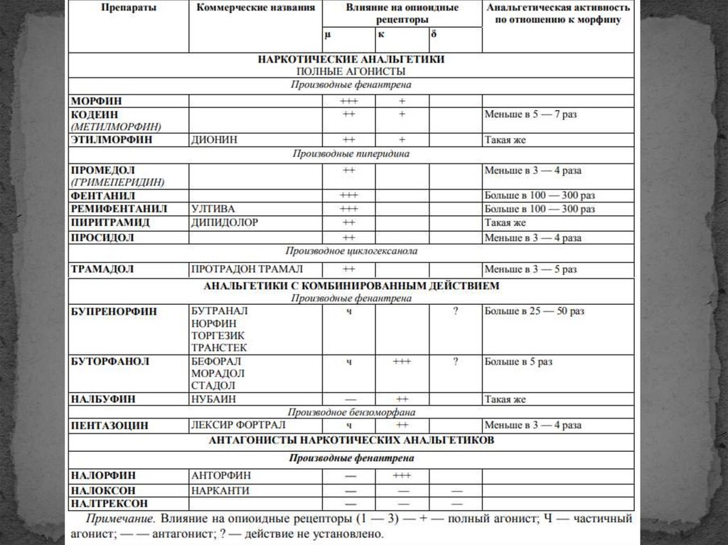 опиоиды) и по характеру взаимодействия с опиатными рецепторами