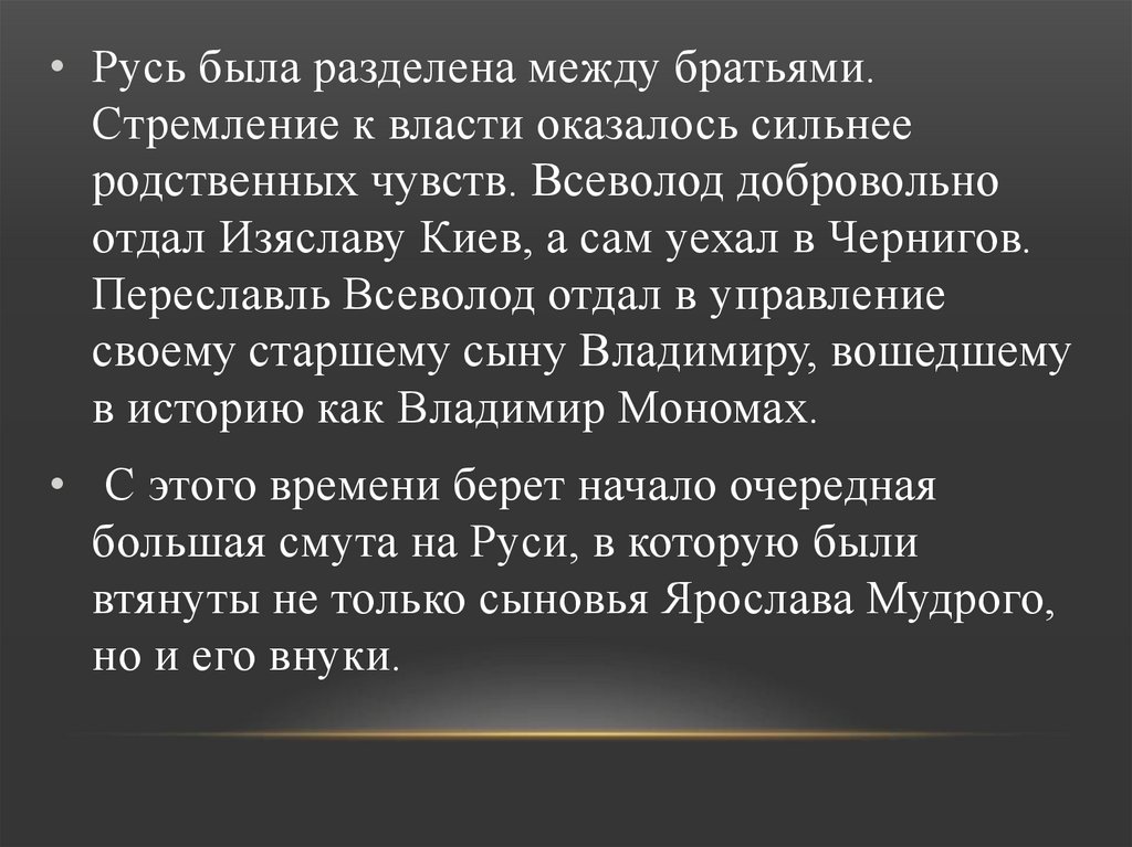 • Русь была разделена между братьями.Стремление к власти оказалось сильнее