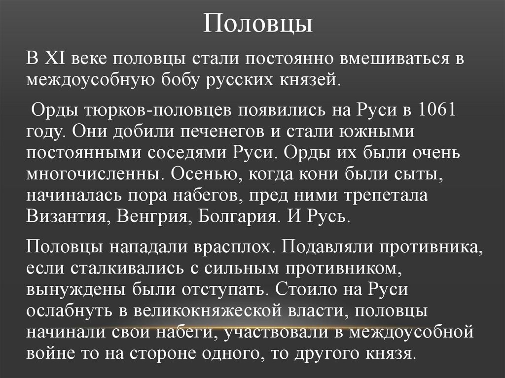 ПоловцыВ XI веке половцы стали постоянно вмешиваться в