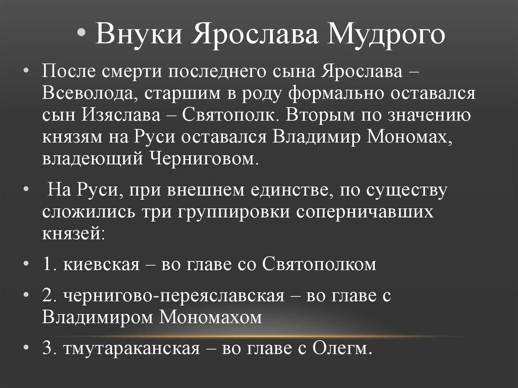 • Внуки Ярослава Мудрого• После смерти последнего сына Ярослава –