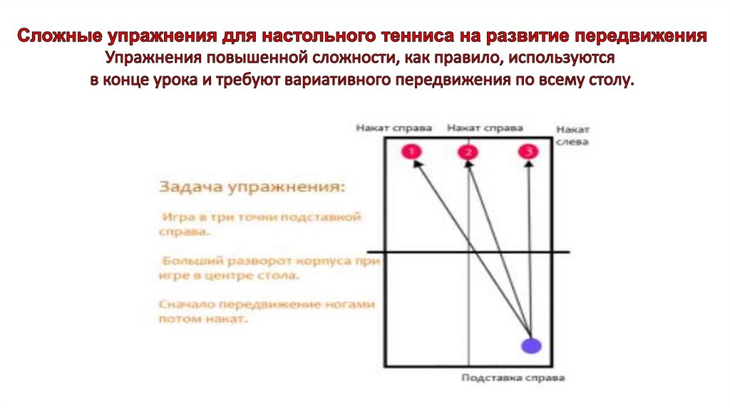 Сложные упражнения для настольного тенниса на развитие передвижения