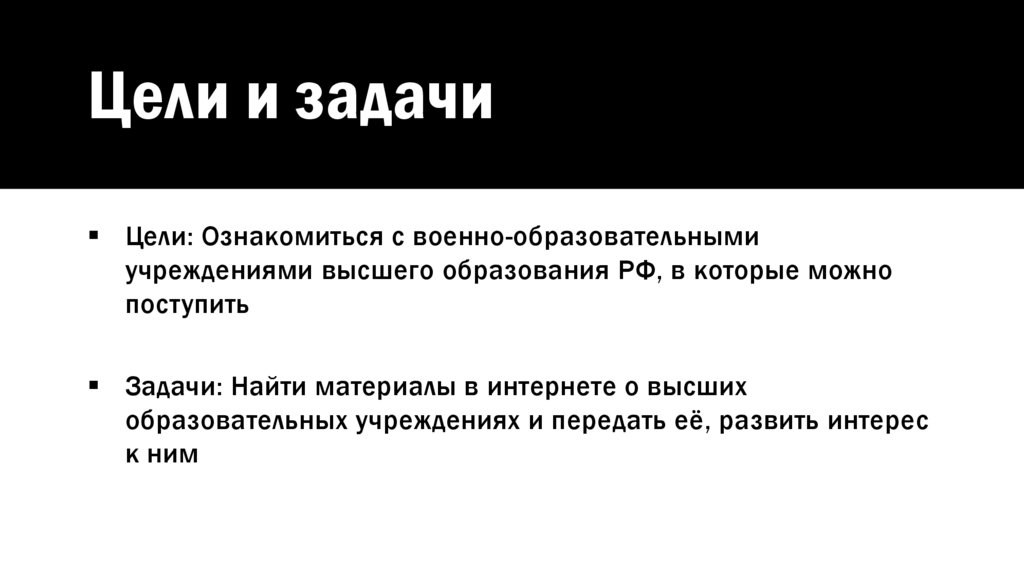 Цели и задачиЦели: Ознакомиться с военно-образовательными