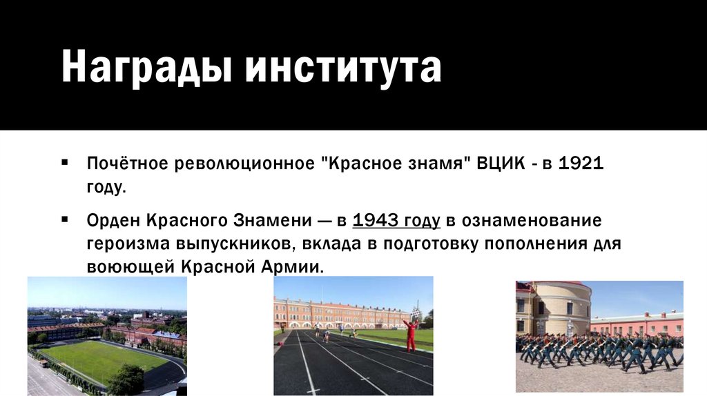 Награды институтаПочётное революционное "Красное знамя" ВЦИК - в 1921