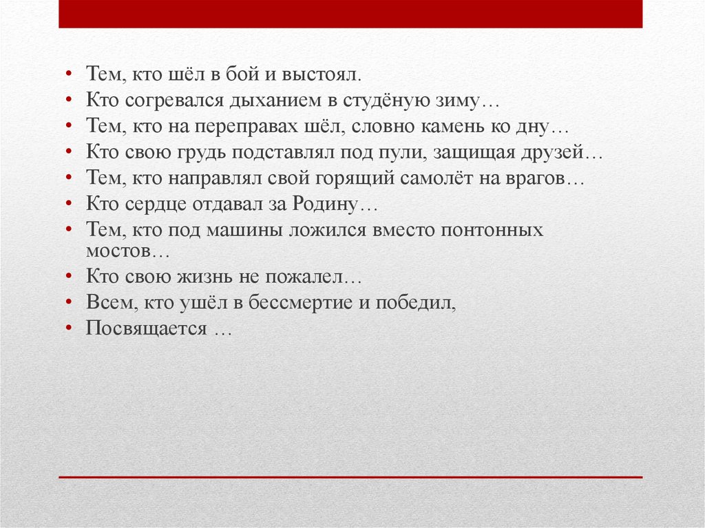 Тем, кто шёл в бой и выстоял.