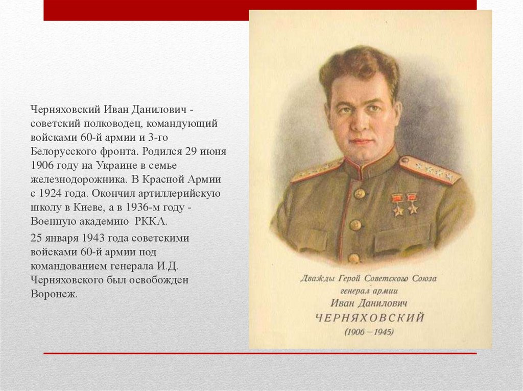 Черняховский Иван Данилович советский полководец, командующийвойсками 60-й армии и 3-го