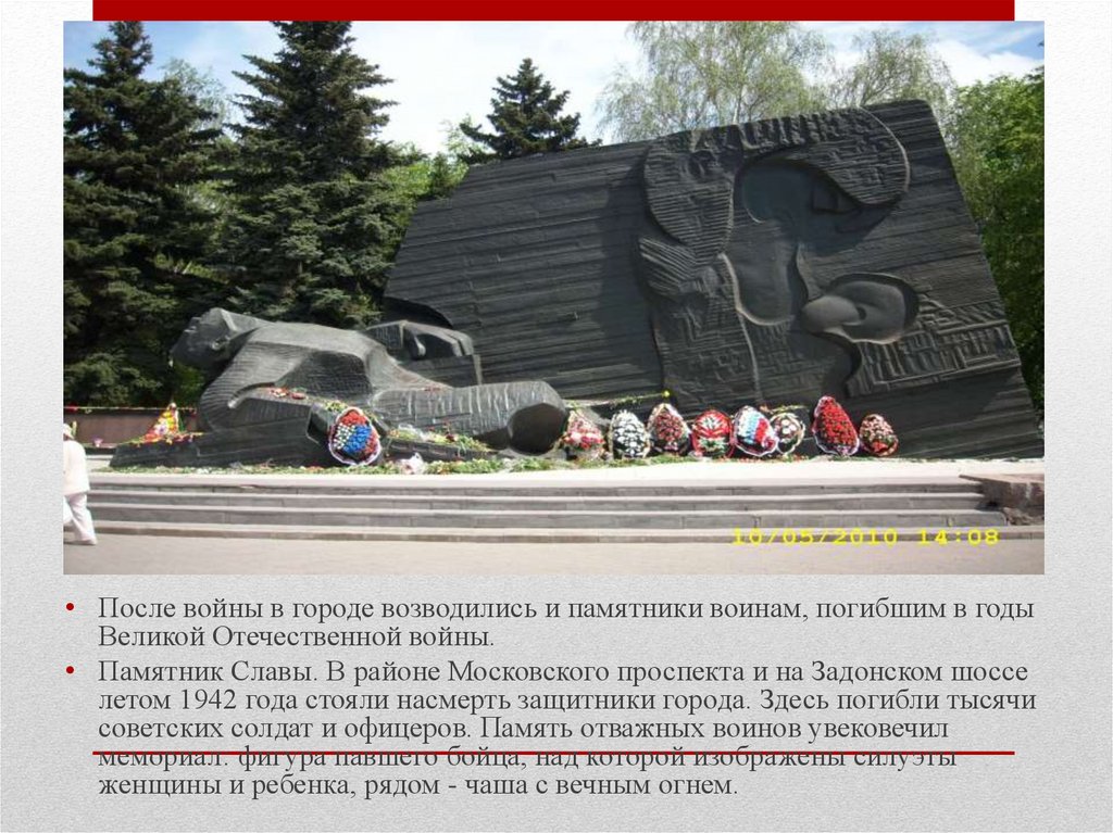 • После войны в городе возводились и памятники воинам, погибшим в годыВеликой Отечественной войны.