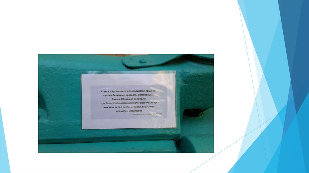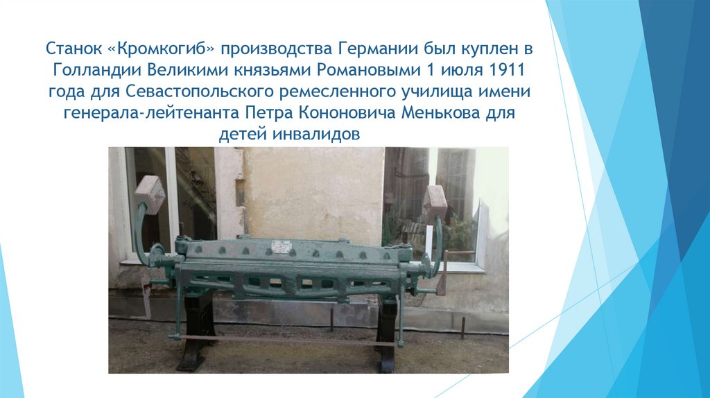 Станок «Кромкогиб» производства Германии был куплен вГолландии Великими князьями Романовыми 1 июля 1911