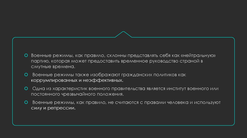 Одной из почти универсальных характеристик военного правительства