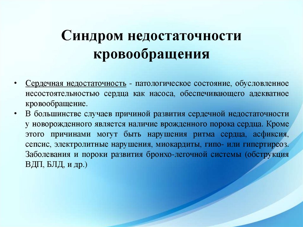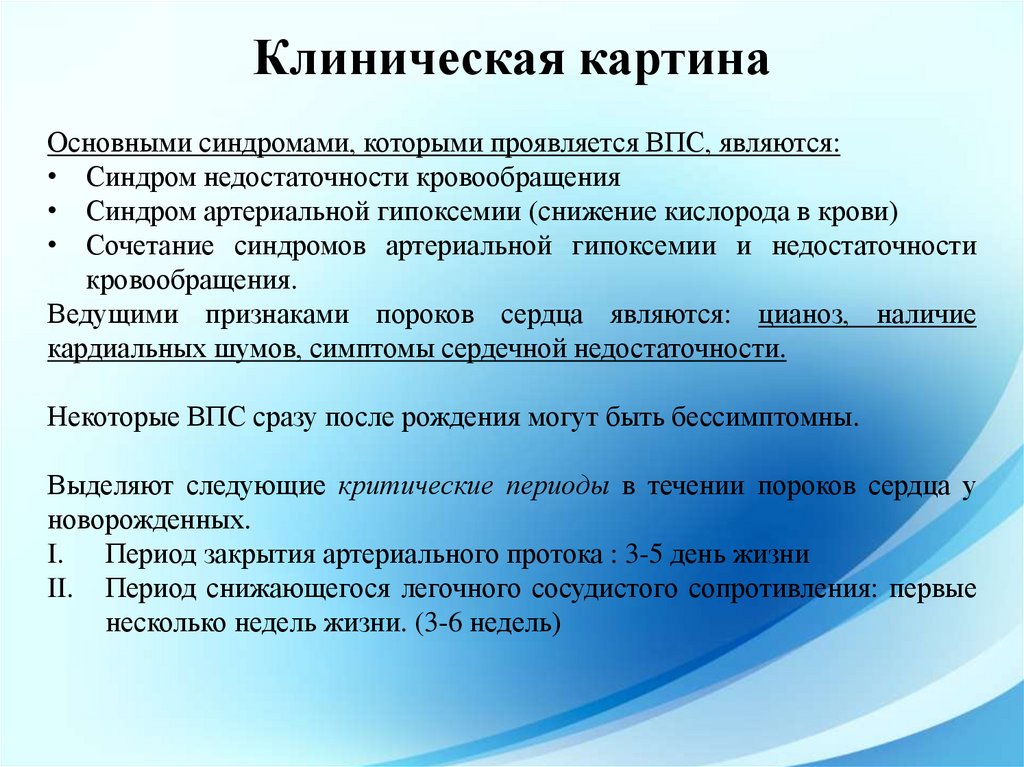 • Критическое состояние новорожденного с ВПС характеризуется острым
