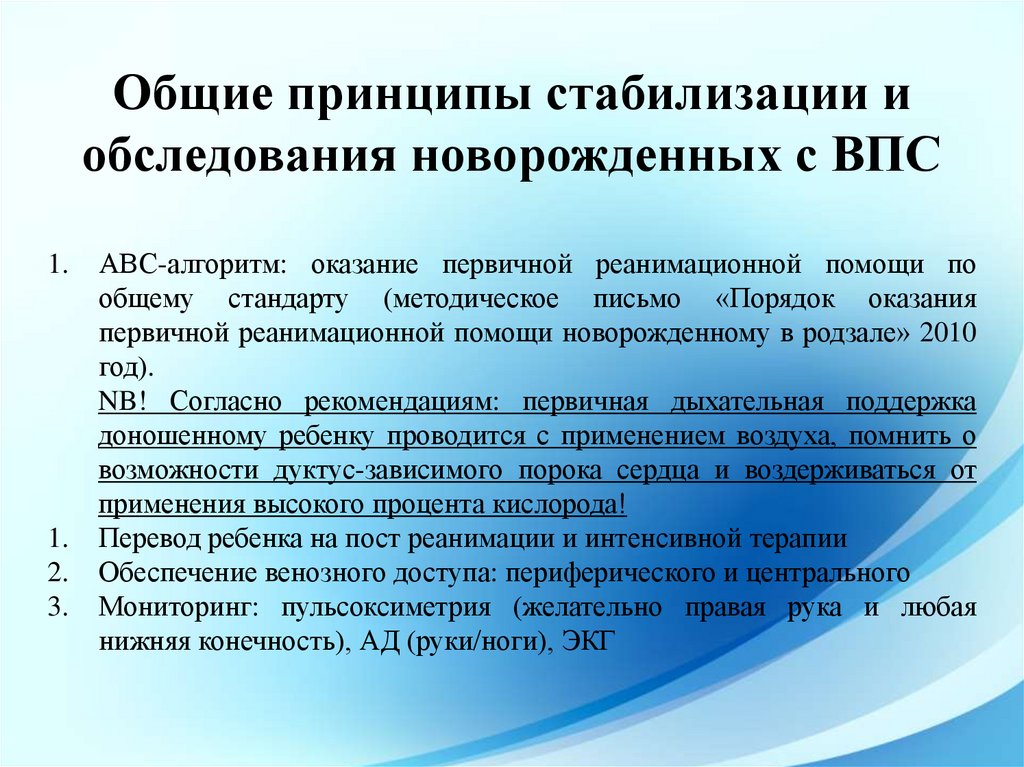 Общие принципы стабилизации иобследования новорожденных с ВПС